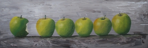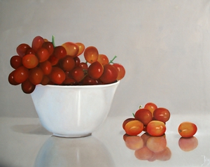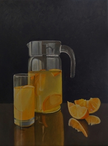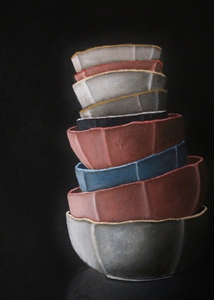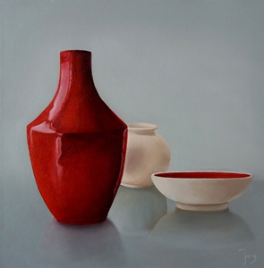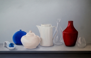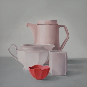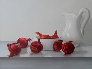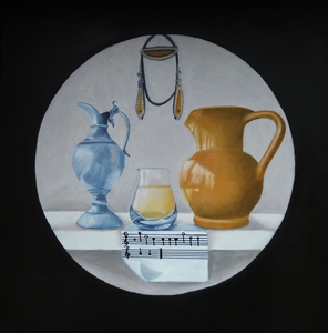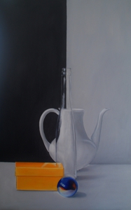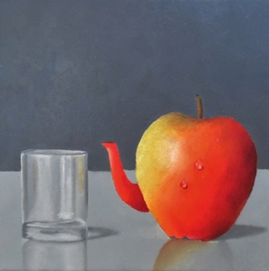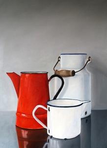 Naast geabstraheerde landschappen vind ik het ook leuk om realistische stillevens te schilderen. Modern realisme is niet alleen een kopie van de werkelijkheid. Het gaat dieper, er is meer. Door alledaagse voorwerpen uit de grote massa te schilderen, krijgen ze de volle aandacht. Ze worden belangwekkend en karaktervol, er groeit een gevoel van verwondering over de kleur en de vorm van kleine dingen, die toch zo gewoon zijn. De vormen worden bijna abstract.