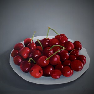 2020Zomer met kersen, 20 x 20, ingelijst is het 30 x 30